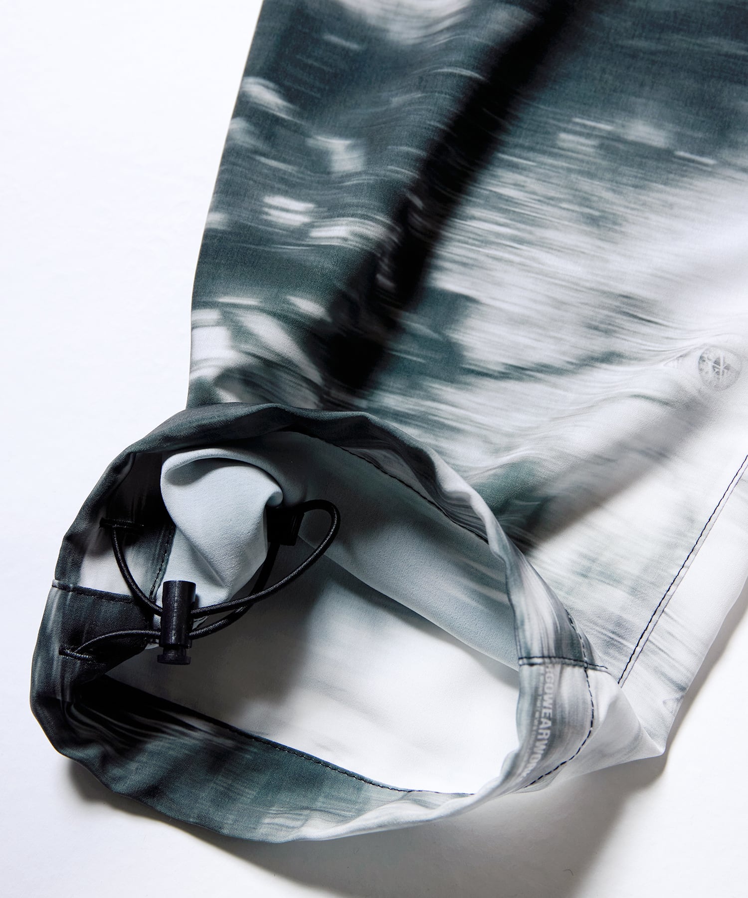 オリジナルテキスタイルによるリアルツリー調の総柄と、ブラック生地の切り返し部分にはさりげなくブランドロゴもドロップ。